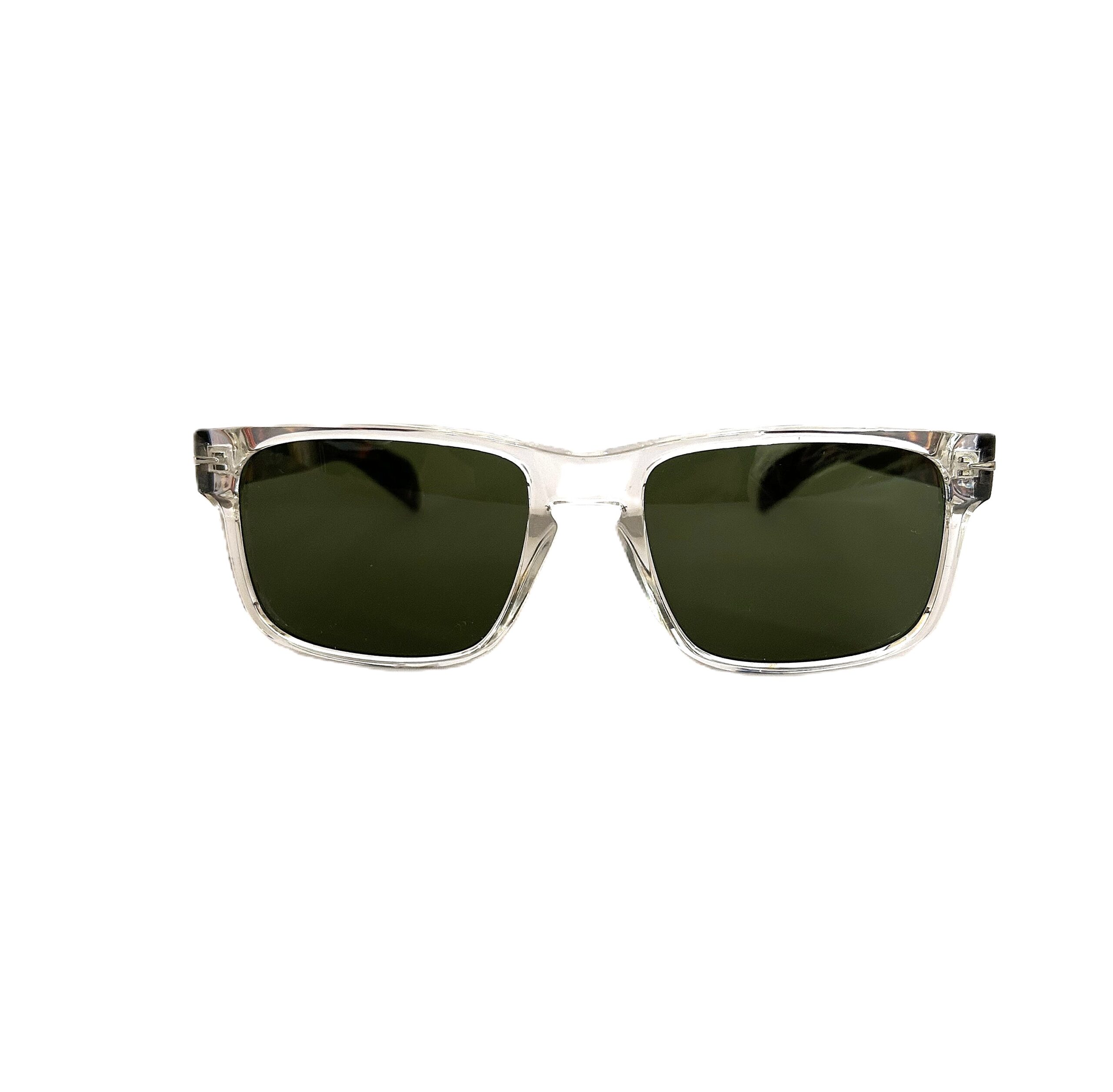 Clear front frame with tortoiseshell arms.Smoke lens.UK 400 European standards.Comes with case and cloth and free UK shipping.